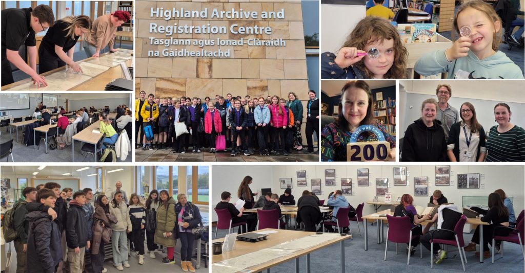 Using our documents in educational settings is always a pleasure. In the last few months we have enjoyed helping Lochardil Primary School mark their 60th anniversary by giving tours and talks to multiple classes, and have shared our slavery-related materials with students from Inverness High School. We’ve welcomed students from further afield too, with a group visiting us from Argentina! Through the holidays we have thoroughly enjoyed partnering with High Life Highland countryside rangers, libraries, and active schools teams to share our collections in new and fun ways. We have continued to work closely with the Centre for History at the University of the Highlands & Islands (UHI), taking part in dissertation workshops and public history modules for students, and in September Community Engagement Officer, Lorna, was invited to be part of a panel discussion about using archives. This session was held at the University of Strathclyde and attended by students from across Scotland. Our partnership with Fife College and HMP Inverness continues to be incredibly rewarding and following our latest collaboration, looking at superstition, myth and folklore in the Highlands, prison learners have produced some fantastic artwork which we look forward to sharing with you in the new year. Our online series of talks, Learn With Lorna, designed to share stories from our collections with a wide audience, marked its 200th anniversary with a special Q&A episode in November. This, along with all previous episodes can be viewed here.