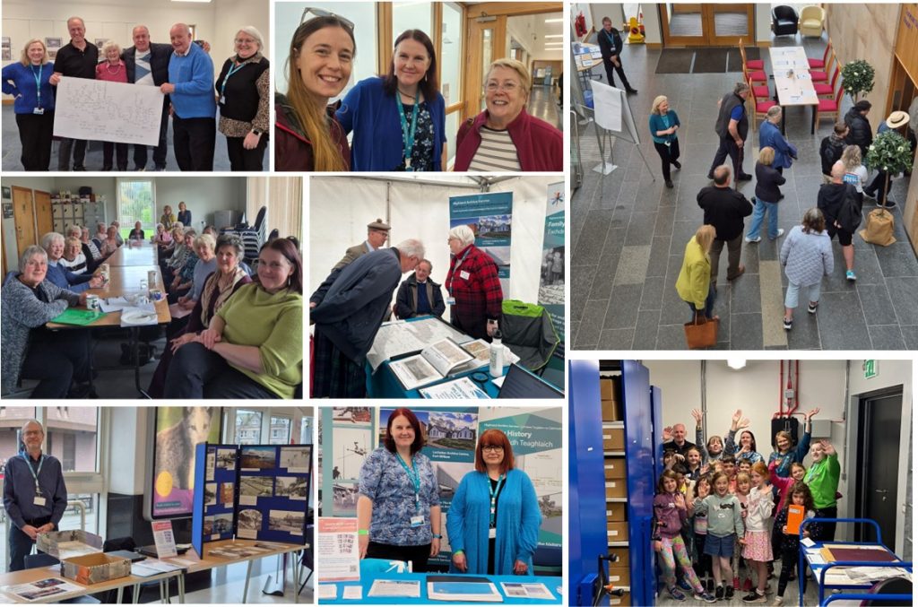 As always, Lorna and Family Historian, Anne, have been busy giving talks and welcoming groups to the Highland Archive Centre for tours. Among those we have worked with in the last few months are Dingwall and Grantown U3As, the Clan Chisholm Society, the Captain’s Table, Inverness Macular Support Group, the Badenoch Heritage Festival, Rothiemurchus Sunshine Club, Glenurquhart Heritage Group, the Society of Australian Genealogists and many more! In addition we have enjoyed attending Highland games and clan gatherings, supporting the Northern Meeting Park redevelopment project, and taking part in national events such as Doors Open Days, the Jacobite Festival, and Silver Sunday. It’s been a whirlwind of events, some of which are pictured above and below.