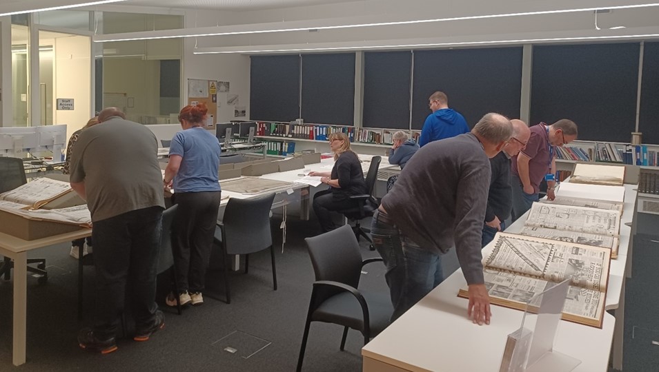 Vulcan Social Club (pictured below) returned to Nucleus for a repeat visit on the evening of Wed 30th October. A bespoke selection of archives were put on display in the searchroom, alongside a chance to explore the Yarrows Heritage Trust exhibition in the Community Room.