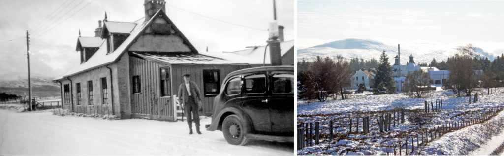 Unsurprisingly, the Dalwhinnie Distillery, with its distinctive pagodas, features prominently in the collection. Established in 1897, the distillery uses the pure water from Lochan an Doire-Uaine to produce its distinctive and famous whiskies. The railway also featured heavily in the collection. Dalwhinnie Station opened as part of the Inverness & Perth Junction Railway in 1863. The station buildings, designed by Joseph Mitchell, opened a year later.