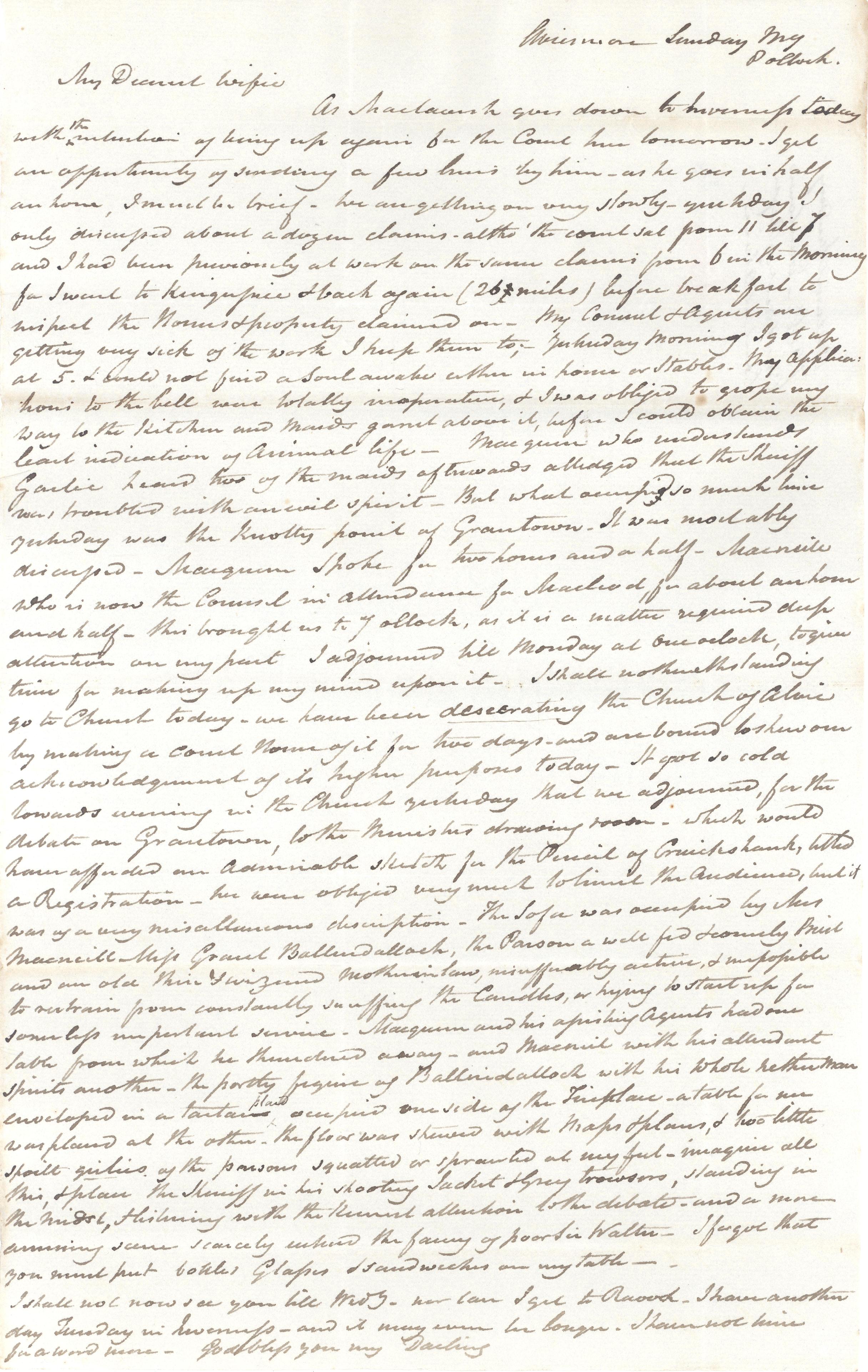 Letter by William Fraser Tytler to his wife, written whilst holding a court in