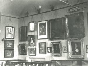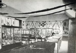Inverness Museum displays c.1920s including boa constrictor skins strung across the ceiling
