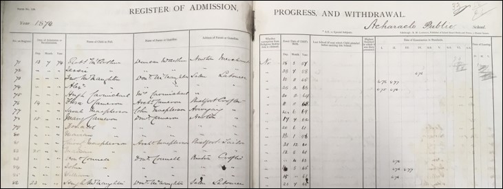 Log Books and Admission Registers make up the main series of school records held in the archive collections. Admission Registers list the pupils as they are registered at school every year. This makes them very useful for family history research. Log Books are like diaries of the school. The headteacher writes an entry every day or week about life at the school. It can include lots of different things like numbers of absent pupils, updates on the weather, exam results, parties or holidays and general news. You can see some examples of these records below. You can also read more about school records in our storyboard about Insh School.