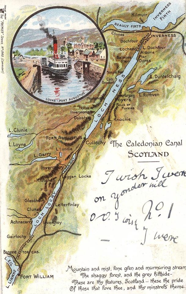 After an overnight stay in Inverness, Malcolm Blane and his father joined the P.S. Gairlochy for the journey along the Caledonian Canal. Leaving Muirton (Inverness) at 7.00am, they arrived at Fort William at 4.15pm and Oban at 7.10pm, where they stayed overnight at the Great Western Hotel.