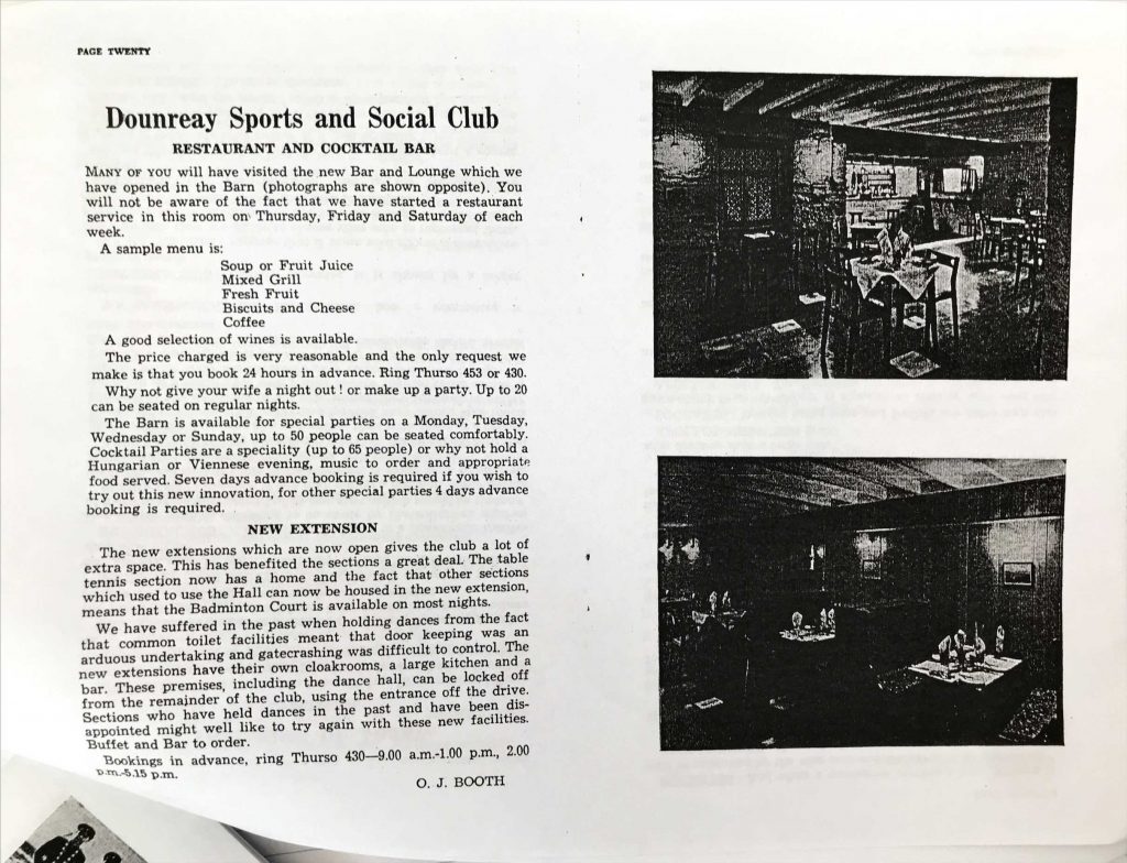 Also within our collections are copies of the Haggis Magazine, a staff newsletter published by Dounreay Sports and Social Club and Ormlie Lodge Club. We hold copies from 1961-1965. The below digitisation from the Spring 1962 edition advertises the newly opened restaurant and cocktail bar, giving a sample menu as well.