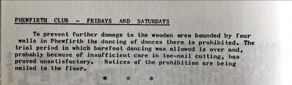 The Spring 1964 edition mentions a ban on dancing barefoot and in certain areas.