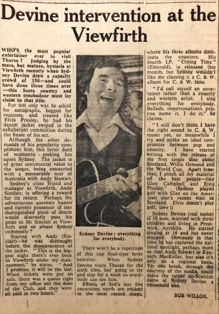 The 1970s saw a huge turnout for Sydney Devine who played the Viewfirth on the 3rd of April 1974. The Caithness Courier ran a piece describing him as ‘the most popular entertainer ever to visit Thurso’.