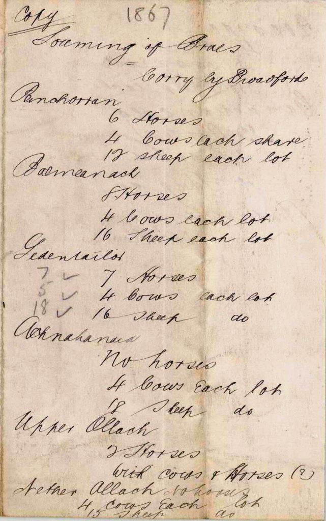The letter also stated that they did not have any right to the grazing on Ben Lee and that their rent was lower than in other parts of Skye. His letter also threatened the crofters with eviction.