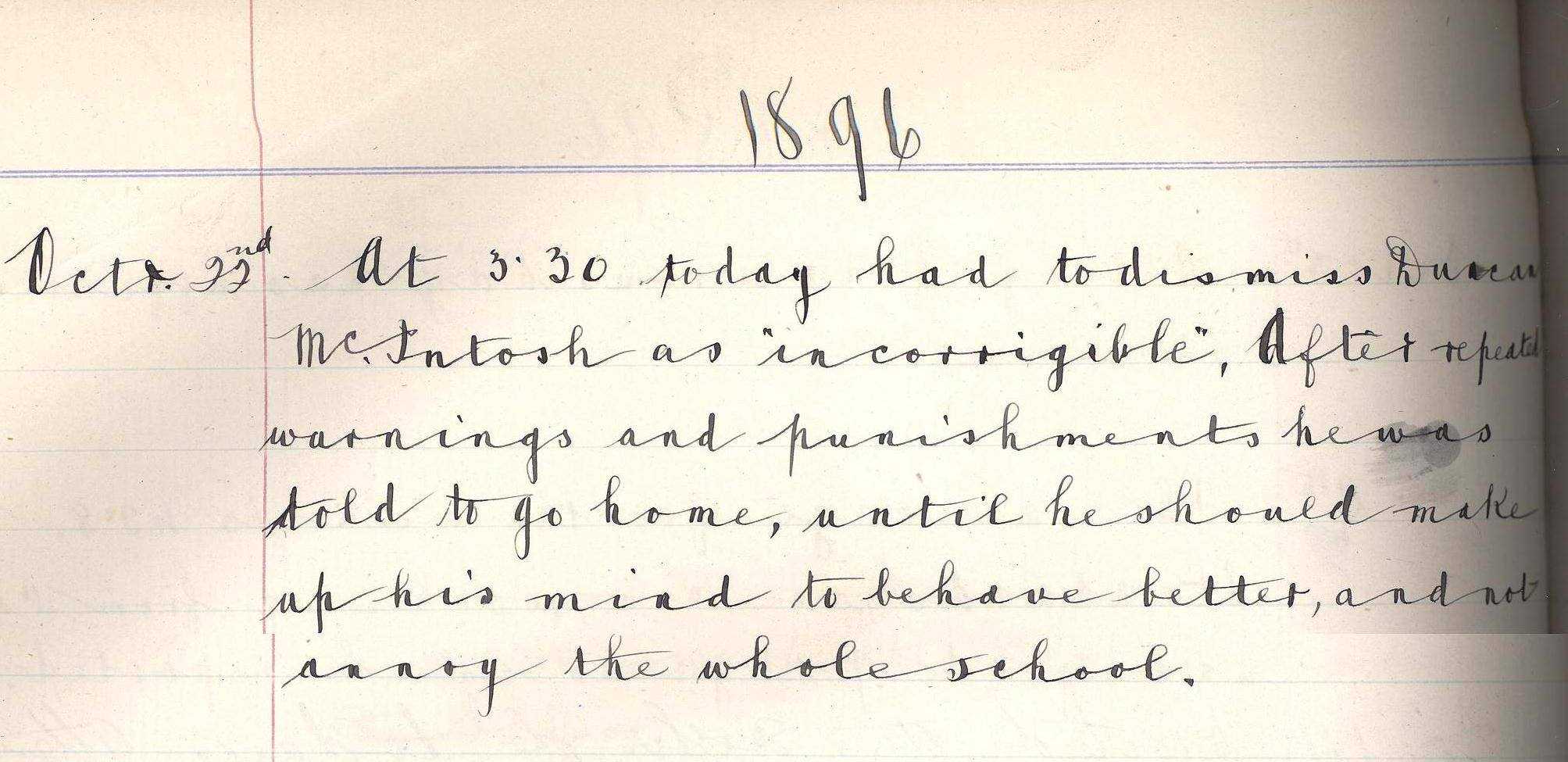 High standards of discipline were expected in schools. The high spirits, pranks and chatter of the holidays had no place in the classroom, and those who indulged could often expect to face punishment.