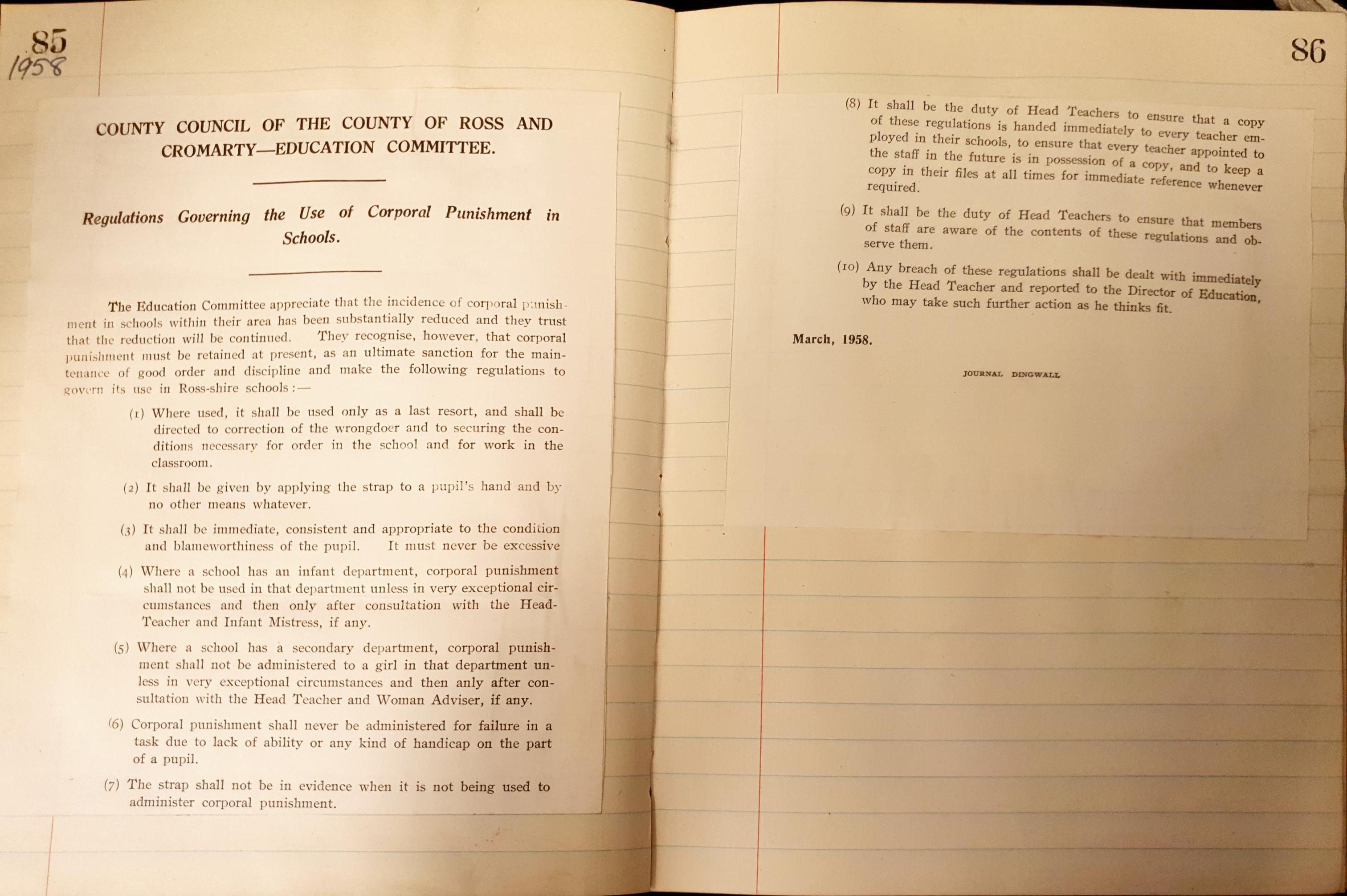 Many people today still have vivid memories of being subjected to the belt (also known as the tawse or the strap) for incidents that varied from throwing stones to copying other pupils’ work. Issues surrounding discipline, or the lack thereof, appear regularly throughout school records. Log books document punishments meted out and school board minutes record cases of pupils who were so persistently truant that compulsory officers were called in, rebuke being extended to their parents.