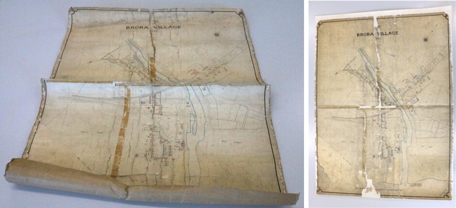 In August the High Life Highland Conservation Service completed work on an 1899 plan of “Brora Village” at the request of Clyne Heritage Society ahead of the opening of the new Brora Heritage Centre. The plan was conserved then digitised, with a high definition copy printed to scale to be exhibited at the Centre.
