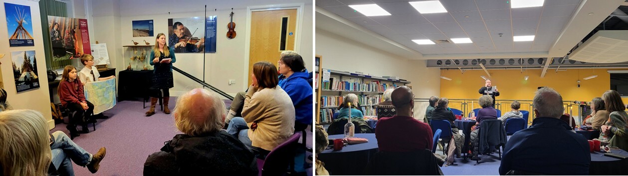 The Cree Fiddlers of James Bay exhibition opened at the Skye & Lochalsh Archive Centre, where it will remain on display until 31 March 2026. Curated by Skye-based ethnomusicologist Dr Frances Wilkins and Scottish fiddler and designer Ronan Martin, the exhibition weaves together photographs, objects, film, clothing, and a remarkable archive of sound recordings gathered over more than a decade of visits to the Cree (Eeyou) communities of James Bay in sub-Arctic Canada. Rooted in a musical tradition shaped by the fur-trade era and the cultural exchanges between Cree families and Scots Hudson Bay Company workers, the exhibition reveals the ongoing vitality of fiddle music and dance in Eeyou life, and celebrates the musicians and dancers whom Frances first met in 2011 and continued to revisit with Ronan and their children. The Archive Centre hosted a warm and intimate opening evening in which Frances and Ronan shared their fieldwork, spoke of the people they encountered, and played tunes learned directly in James Bay - offering audiences on Skye a glimpse into a living, 200-year-old musical heritage, resonant with echoes of our own histories of journeying, encounter, and return.