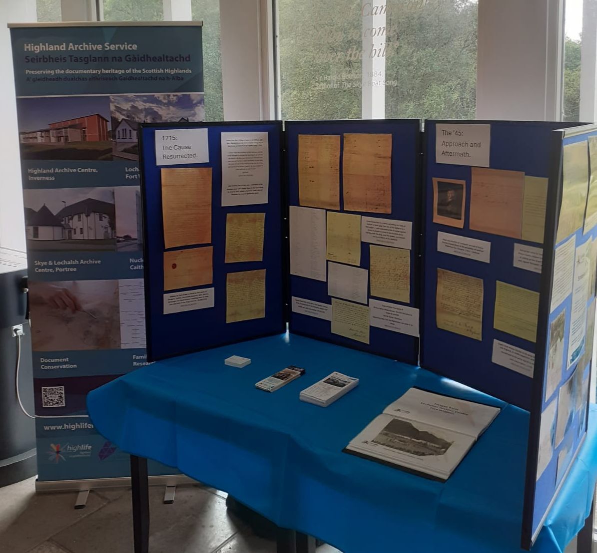This year, we were lucky enough to be invited once again to the Arisaig Highland Games and Gathering, and to take part in the Jacobite Festival which is now in its second year. For the latter we once again held a Jacobite Document Exhibition here at the Lochaber Archive Centre. It is always enjoyable to share our invaluable original Jacobite documents with the public, which date from the late 17th Century to Culloden in 1746 and beyond. Glenfinnan National Trust Centre very kindly invited us to take this exhibition ‘on the road’ and accommodated us for two days in the summer.