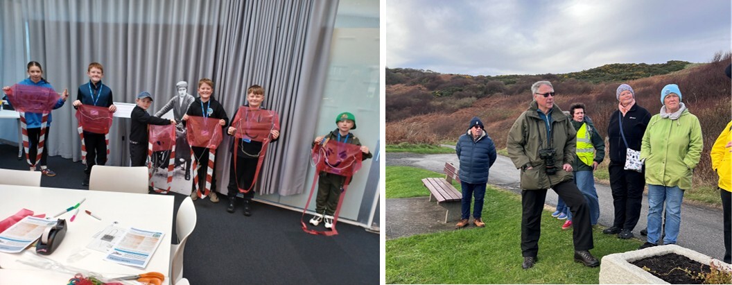 The Caithness Archive Team have been teaming up with High Life Highland colleagues in the Countryside Rangers Service to deliver collaborative events for both adults and children focusing on nature, history and our local heritage. Archive Assistant Jennifer collaborated with the Countryside Rangers for a special Schools Out Event for 8-14 year olds focusing on ‘Taking Flight’ at Nucleus on 22nd October. The morning included a walk to discover more about RAF Wick and WWII, kite making, and a chance to explore records and photographs relating to the topic of flight within the archive searchroom. On 31st October Archive Assistant Valerie worked with the Countryside Rangers and Waterlines Heritage Museum and Visitor Centre to run a bespoke walk through historic Lybster. Pictures of both events can be seen below.