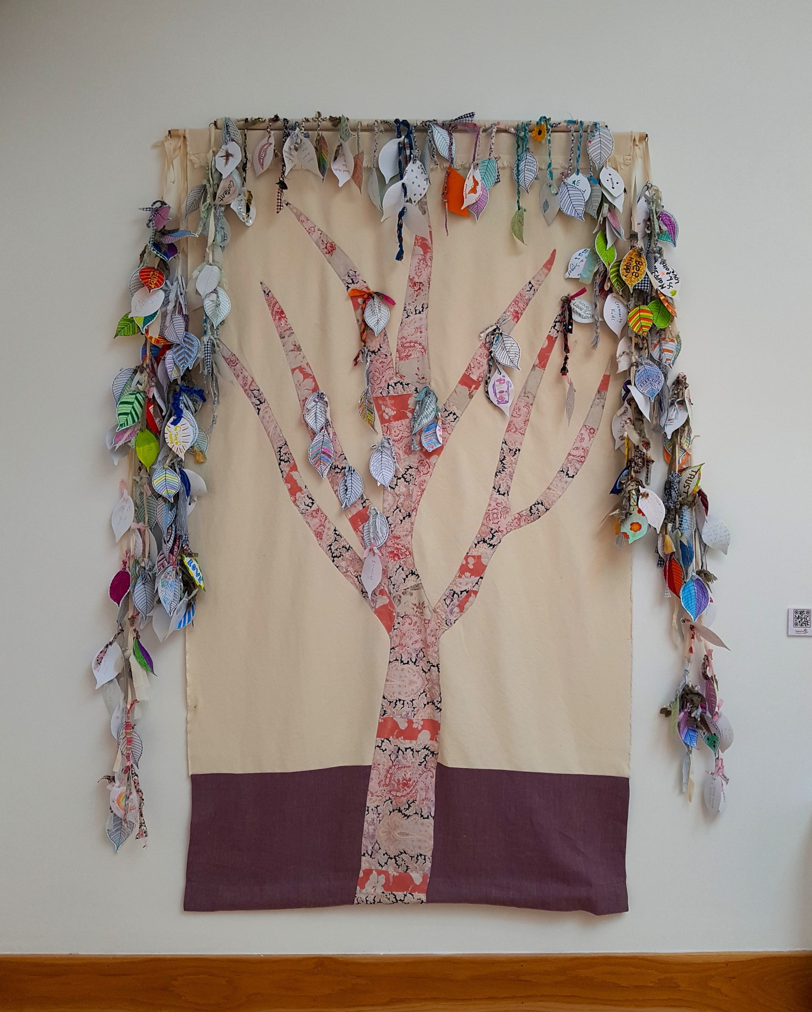 As part of the overall project, we ran the Well Wishes engagement project; a mindful craft activity based on the tradition of healing 'clootie wells'. People across the Highlands made wishes on paper hazel leaves and created a cotton braid to tie it to our fabric tree. Some were made by visitors, others were posted to us. In the tradition of clootie wells, as the ‘cloot’ (cloth) decomposes, so too should the ailment of the wishmaker disappear. So after the exhibition closed, almost 1000 wishes were composted at Inverness Botanic Gardens and eventually went to the Highland Folk Museum, where a hazel tree was planted and will be nourished by the compost. The tree will provide a habitat for wildlife and sustainable materials for the museum's traditional building programme. With their return to the earth, the ‘wishes’ will assist new growth and life, completing their cycle.