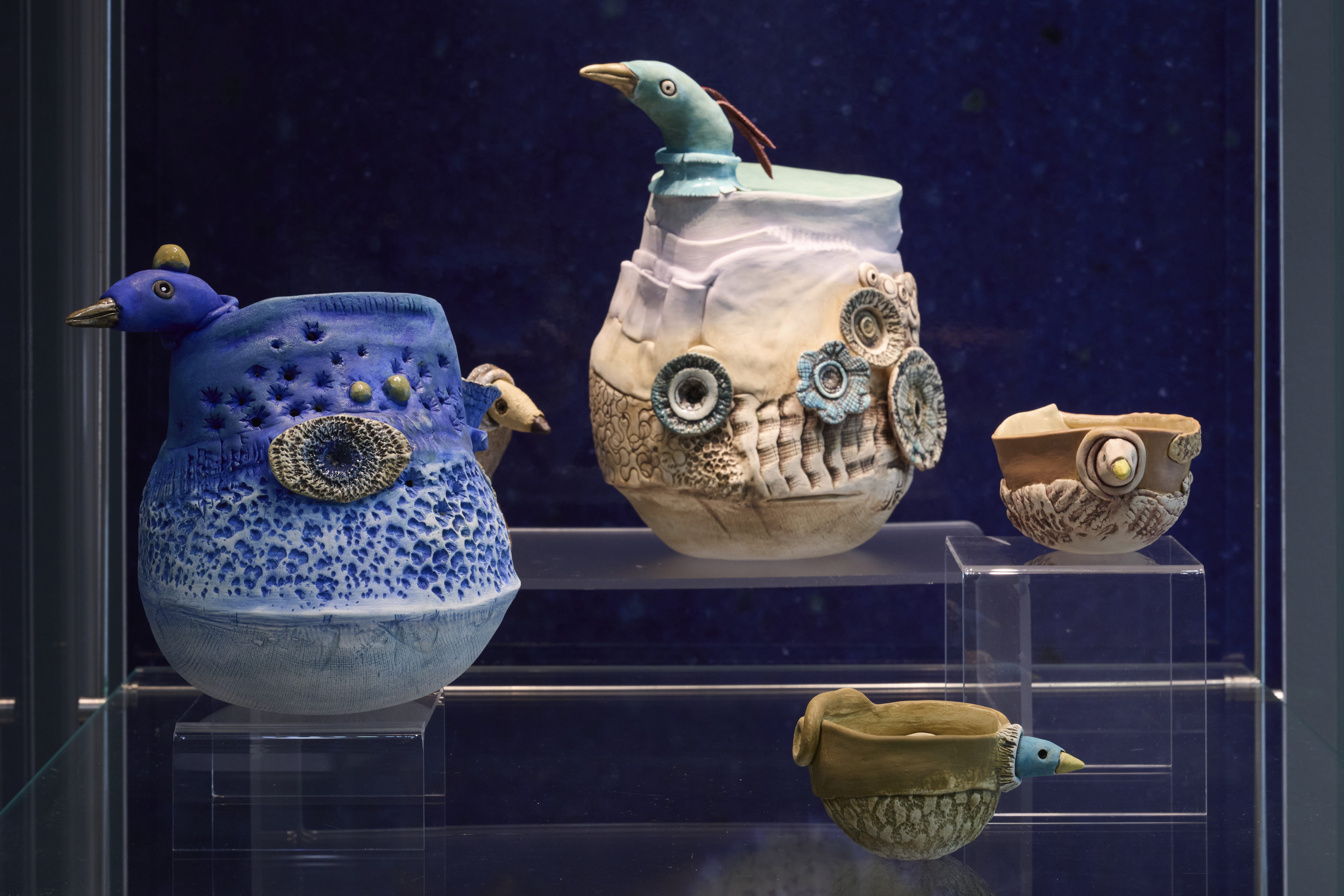 A new series of ceramics displays. Our first conversation will feature a range of amazing birds, both imagined and real.