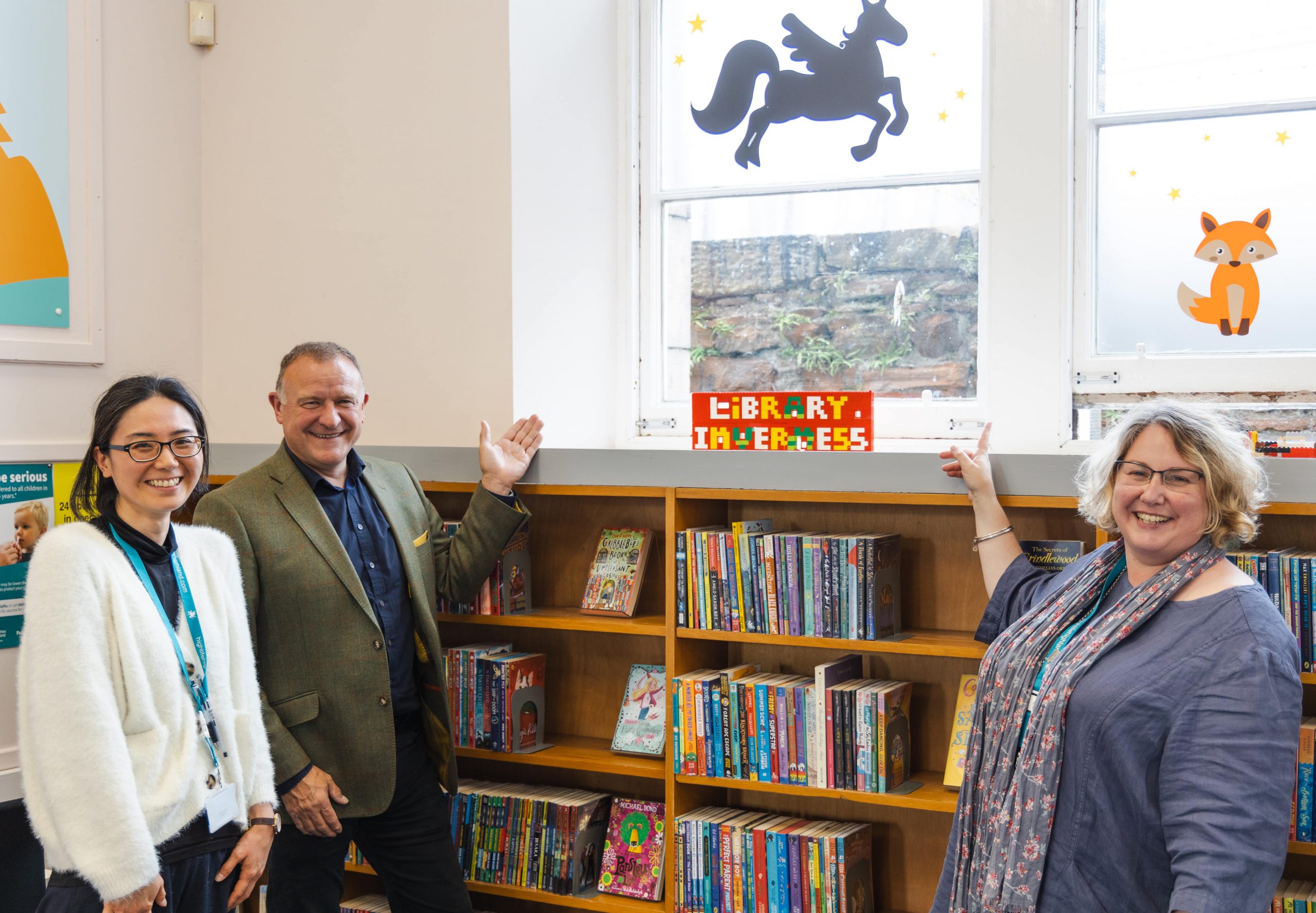 Home » News » Latest News » Local MP Drew Hendry commends High Life Highland staff during visit to Inverness Library » Mr Hendry and Inverness Library Staff with Lego sign Mr Hendry and Inverness Library Staff with Lego sign