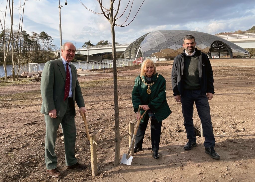 As part of the work on behalf of The Highland Council, High Life Highland is planting five trees at the Raigmore interchange, hydro scheme, Inshes Park, Torvean, and at the University of the Highlands and Islands ground.