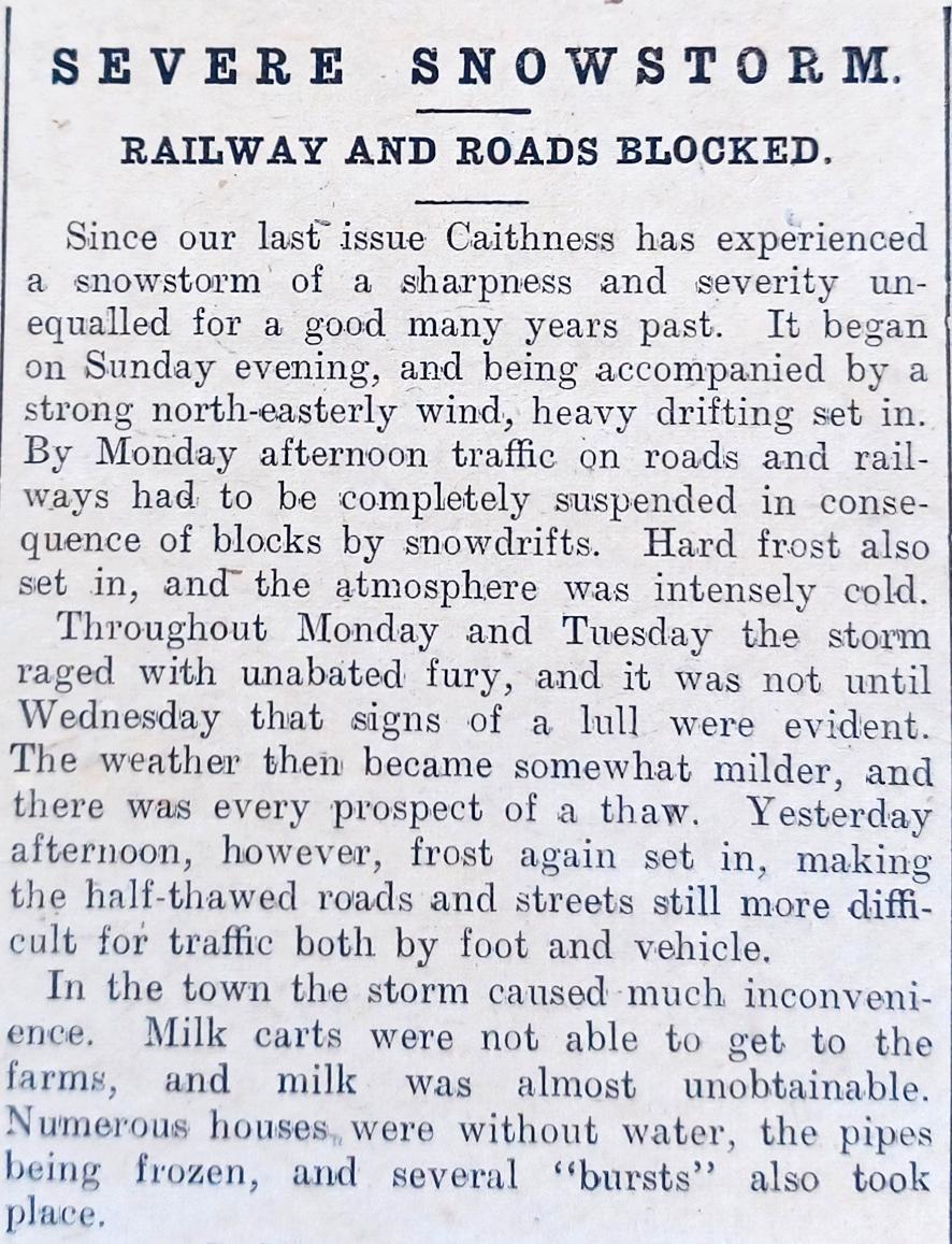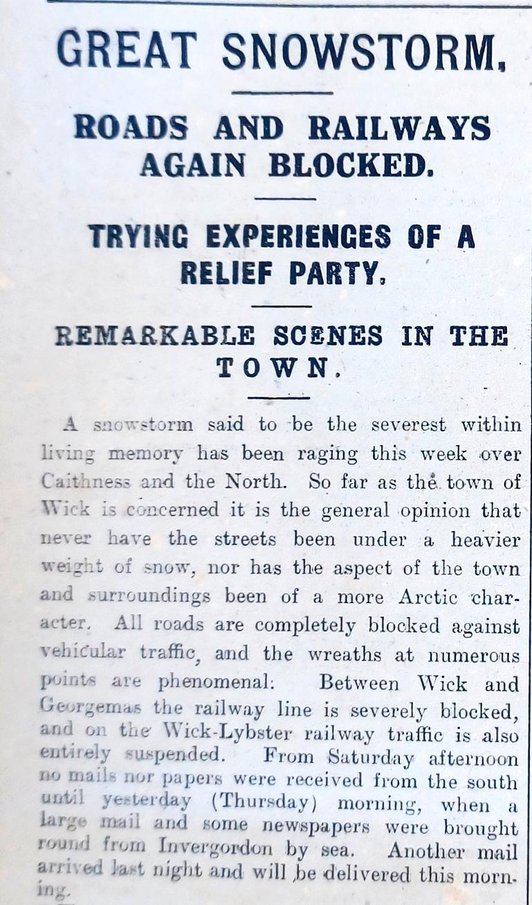 Fires would have been a necessity with such extreme weather no stranger in Caithness. One of our other editions focused on the severe weather of 1955 and Operation Snowdrop. You can read about it here.