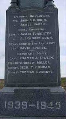 Sadly, Andrew Miller never returned home. He is recorded on the Canisbay War Memorial (image courtesy of Caithness.org) and also on the Commonwealth War Graves Commission website, which adds the information that he was serving in the Merchant Navy on the SS Empire Sun. He was only 37.Meanwhile, the citizens of Caithness continued to be faced with dangerous items on their