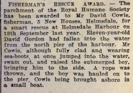 Tragically, on 26 February Major-General Campbell was killed in Egypt in an accident when his jeep overturned. An experienced soldier, he was considered one of the foremost commanders of the Eighth Army and his loss was deeply felt. Thurso Burgh Council paid tribute to Major-General Campbell and the Provost said, “I personally move that the Town Clerk be instructed to convey to his sorrowing widow an expression of our profound regret and our sincerest sympathy with her and her family in their sad bereavement and irreparable loss.” The John O’Groat Journal reported that “the parchment of the Royal Humane Society has been awarded to Mr David Cowie, fisherman, 3 New Houses, Helmsdale, for a smart rescue in Helmsdale Harbour.” Mr Cowie had gone to the rescue of eleven year-old David Gordon, who had fallen in the water from the north pier of the harbour: “Mr Cowie, although fully clad and wearing sea-boots, at once jumped into the water, swam out and raised the submerged boy.”Finally this week, the same paper reported the case of some less fortunate boys who appeared in Wick Burgh Court accused of puncturing the tyres of a tricycle belonging to the Pavilion Picture-house. Two young boys aged about nine years were produced as witnesses: “One of the young boys said he had seen one of the accused cutting the tricycle tyres with a knife. He said the accused made him tell lies before, and they would strike him after the Court for telling the truth. They had threatened to do so.” In his rather