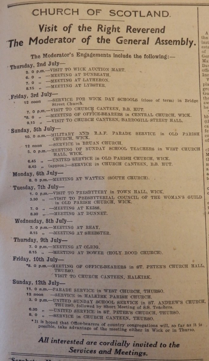 The Moderator of the General Assembly of the Church of Scotland was coming to Caithness in