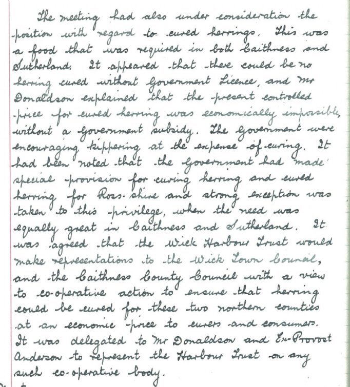 The Wick Harbour Trust was considering the question of cured herrings, which was not now being done in Wick: