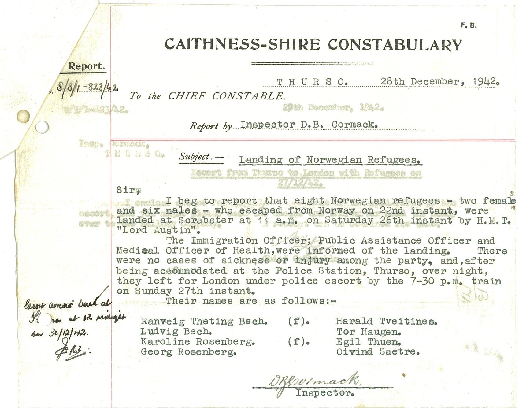 In some ways, the New Year began much like the old with the arrival in Caithness of a party of refugees. The police report of 28 December states: “I beg to report that eight Norwegian refugees – two female and six males – who escaped from Norway on 22nd instant, were landed at Scrabster at 11 a.m. on Saturday 26th instant by H.M.T. “Lord Austin”. After staying overnight in Thurso the party too the train for London with a police escort.The John O’Groat Journal gave accounts of the various children’s treats around the county. As the paper said, “Christmas 1942 can be described as the happiest of the war. With three years of war behind them, and increased confidence in the future, the people had every reason to rejoice.”