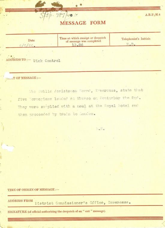 It wasn’t only rescued merchant seamen that landed at Scrabster and Thurso: refugees from occupied Europe arrived there as well. The Caithness Constabulary recorded that, “The Public Assistance Board, Inverness, state that five Norwegians landed at Thurso on September the 2nd. They were supplied with a meal at the Royal Hotel and then proceeded by train to London.”Meanwhile, the authorities were faced with the problem of labourers “who go to work in the