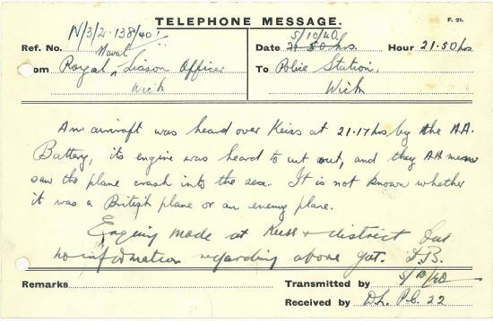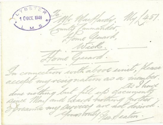 Schools in Caithness returned after the long summer break at the start of the month. Unlike many other schools in the county, Thrumster Public School had been granted a concession “for pupils under seven years of age to attend school owing to the Headmaster having erected an air raid shelter capable of holding all children under seven”. (How the children felt about this “concession” is not recorded!) Although Hitler had postponed the invasion again, the skies above Caithness still saw plenty of activity. The police recorded that “An aircraft was heard over Keiss at 21.17 hours by the A.A. Battery, its engine was heard to cut out, and the A.A. men saw the plane crash into the sea. It is not known whether it was a British plane or an enemy plane.”The Home Guard lost one of its members this week, as George Seaton of Lybster district resigned in sheer frustration at the bureaucracy: “As I have done nothing but fill up documents since May and heard nothing further I presume my services are not desired.”