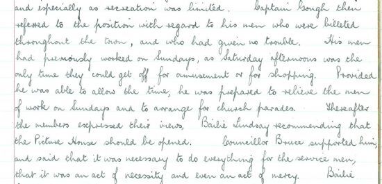 this week to a correspondent: “Life is very real and very earnest here these days with so much going on. I have had a good deal of bother with one or two members of the Committee… The scheme which I put forward has been stigmatized as a piece of Nazi Propaganda! I am a definite Fifth Columnist and I am arranging to put it on foot willingly. I am quite sure that it will do good.” In Thurso, a debate raged in the Burgh Council as to whether there should be films shown at the cinema on Sundays for the troops. Some felt this was a violation of the sanctity of the Sabbath; others felt that the men deserved some recreation at the weekend. In the end they voted in favour: as Councillor Bruce said, “it was necessary to do everything for the service men, that it was an act of necessity and even an act of mercy.”Finally this week, on Saturday 26 October 1940 Wick was bombed again by German raiders. This was part of a concerted raid on the airfield by Heinkel bombers, which flew over the town firing machine guns, before dropping more than 20 high explosive bombs on the north side of the town. Three people lost their lives, 13 were injured and some 140 houses were damaged on Hill Avenue, Rosebery Terrace, Henrietta Street and George Street. Bignold Hospital was damaged, and patients were evacuated to Lybster School, now converted into a hospital.