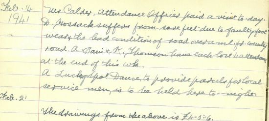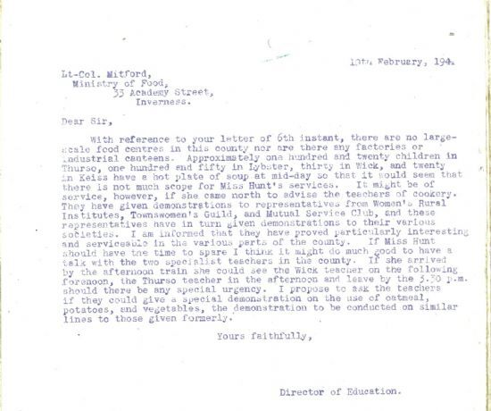 Meanwhile, local communities in Caithness continued to support those serving in the forces. Gillock School in Bower recorded in its log book on 14 February that, “A Lucky Spot Dance, to provide parcels for local service men, is to be held here to-night.”The Director of Education had been asked about cookery in schools, and on 10 February he