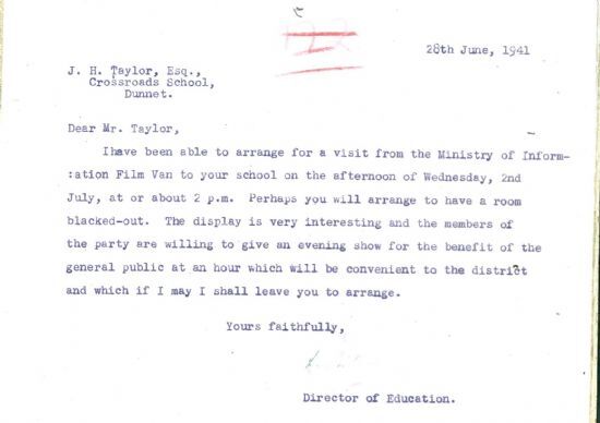 Over on Orkney, Hetty Munro of Thurso went to an ENSA [Entertainments National Service Association] show, put on to entertain the troops. She recorded in her diary that “On Wednesday there was an ENSA show with George Formby & Beryl. They really are marvellously good and he didn’t mind how many encores he sang. Very pleasant people to meet, too, they just talk the same off stage as on.”Meanwhile in Caithness the Director of Education was organising a visit by the Ministry of Information Film Van