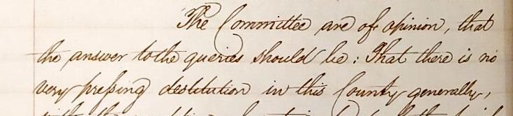 Transcript - ‘The Committee are of opinion, that the answer to the queries [of the Highland Destitution Committee] should be: that there is no very pressing destitution in this County’.