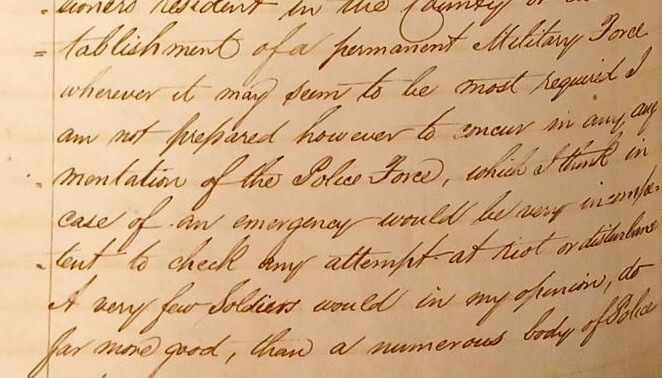 Transcript - ‘establishment of a permanent Military Force… to check any attempt at riot or disturbance’.