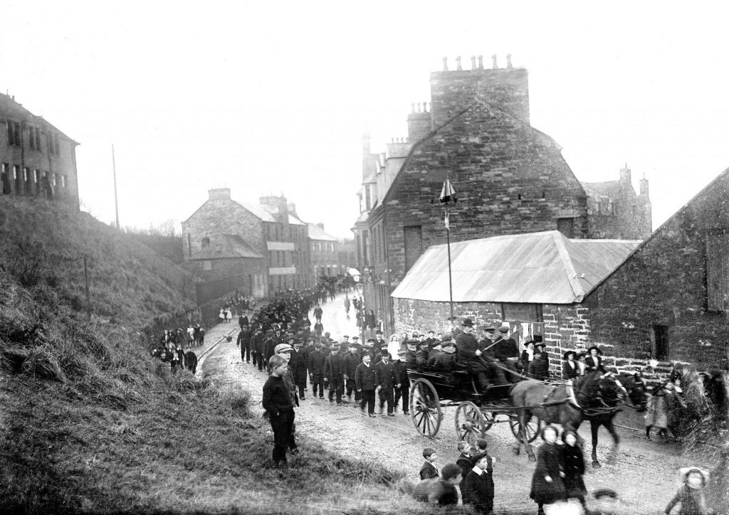 Their route took them along Union Street (pictured above), at the foot of the brae that runs along Sinclair Terrace where the Library stands today; another jeering crowd collected along the top of the brae and soon started throwing stones down onto the soldiers as they passed below.
