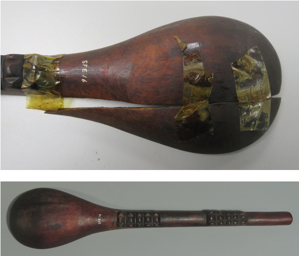 Take self-adhesive tape for example. It might seem like a great way to temporarily hold an object together before undertaking something more permanent, but the reality is that within museums an object can sit for years with tape on it before someone has time to work on it, and at that point the tape has yellowed, the adhesive has become difficult to remove with time, and what was meant as a quick fix has stained the surface of the object.