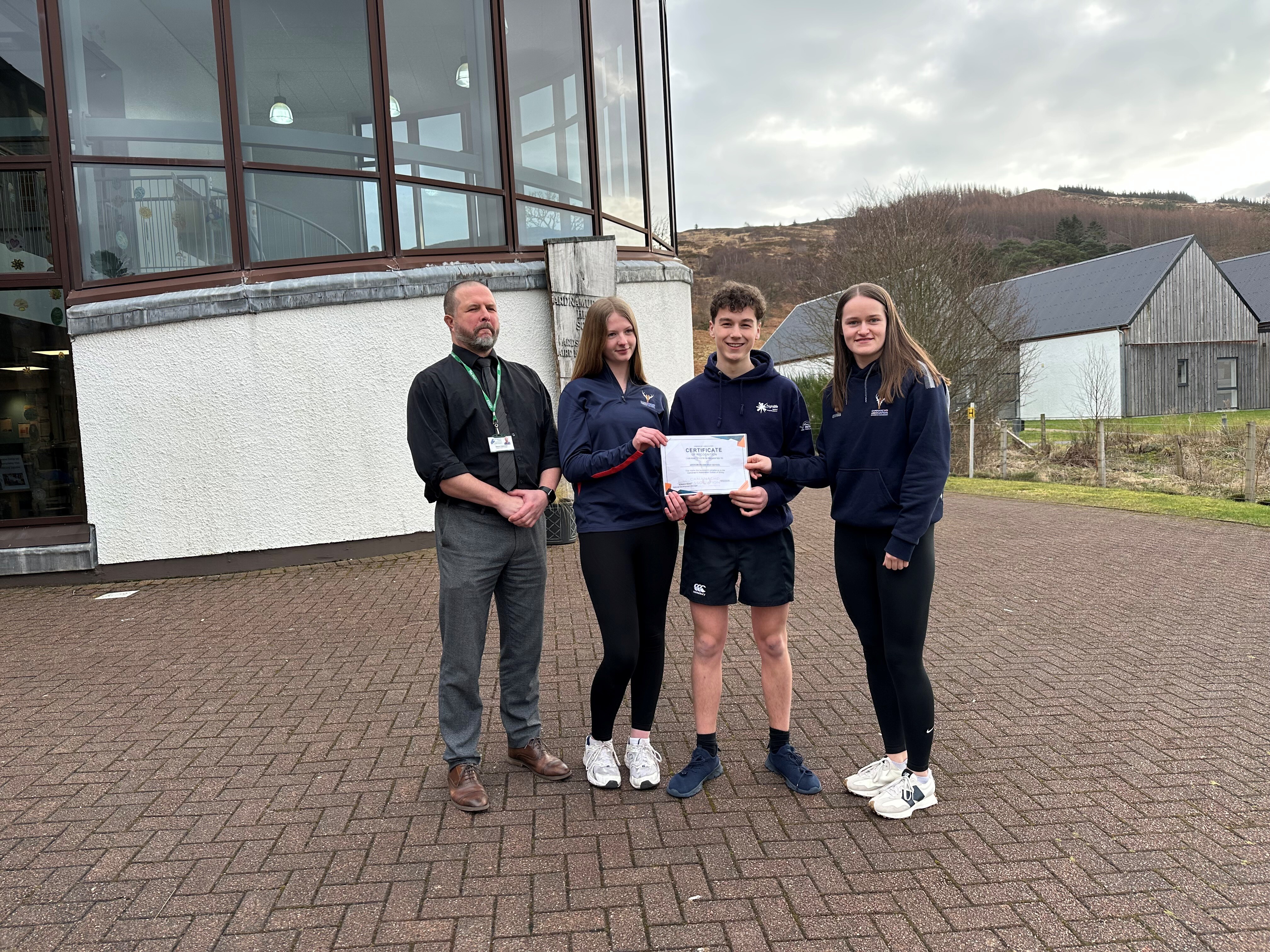 Ardnamurchan High School has been awarded a Gold School Sport Award by sportscotland, and a Gold Shinty School Award by the Camanachd Association — both recognising the school's outstanding dedication to keeping pupils active, engaged, and inspired.
