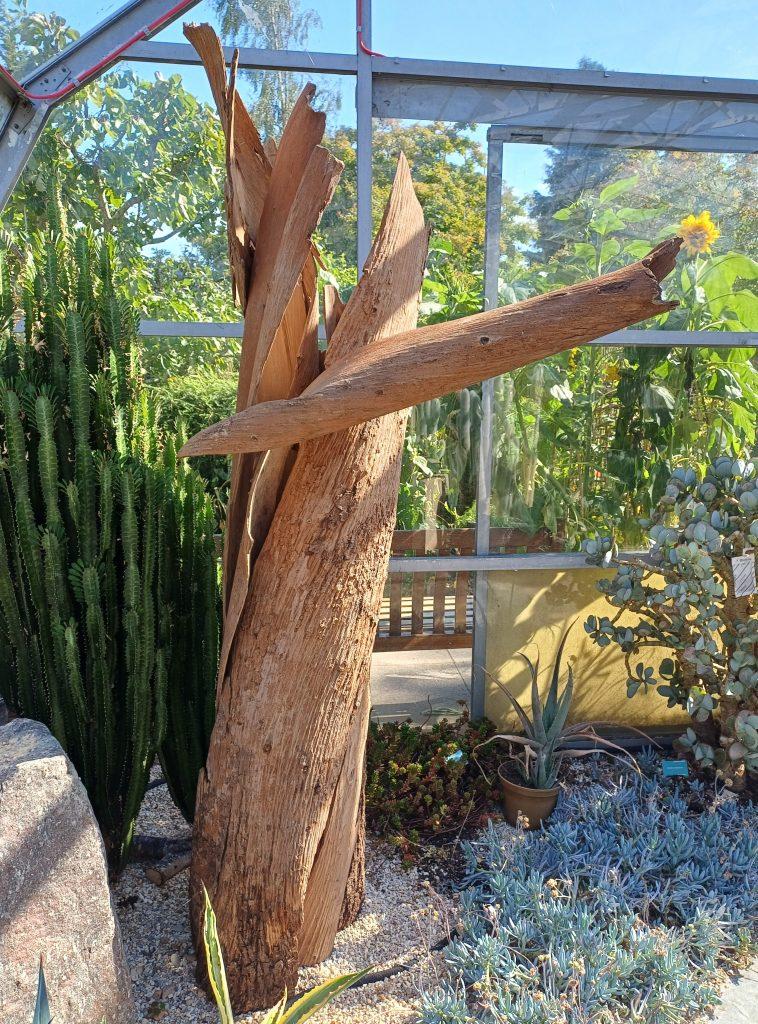 Nigel Goldie commented: “One of the distinctive features of the sculptures in the glasshouse is that they are not only made with materials from nature, but also the construction method has relied on pinning the elements together by a doweling technique without additional glueing or other means of holding them together. This means they are fragile but also unusual and unique forms are thereby created.