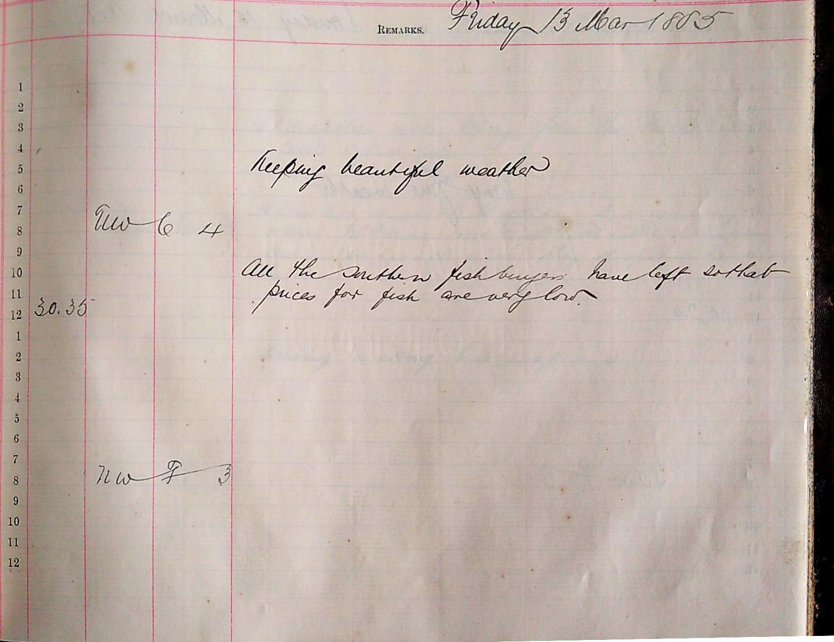 Tensions seem still to be high on the 17th when it is reported that ‘a trawler came to the bay today but according to orders Mr Payne told the Master not to attempt to come in for fear of a row. They dropped anchor in the bay’. A few days later however, on the 19th, ‘the “Palmerstone” steam trawler came in to sell her fish without any hostile show from our fishermen’ and again on the 20th two trawlers ‘landed their fish without being annoyed in any way’. It appears that the outcome is agreeable to the harbour master’s office and would of course make his running the harbour far less strenuous. Finally, by the 28th fish are again ‘selling very high’.