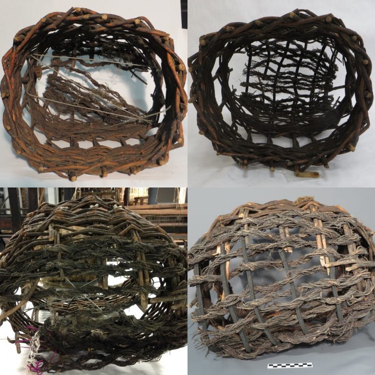 Helen – One of my favourite baskets in the collection is KIGHF.QP.0064, a fishing or angling basket. This kind of basket is still in use today. There is a slot in the lid for the angler to pop the fish through, once caught.