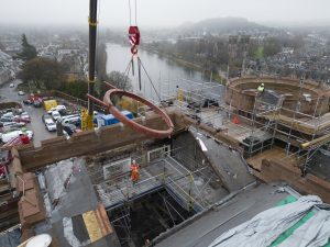 Home » News » Latest News » Structural work begins on new accessible roof terrace for Inverness Castle Experience » 201123 Picture 1 Lowering of the circular steel Rose Window frame through the roof opening with view to the Great Glen Credit HLH Ewen Weatherspoon 201123 Picture 1 Lowering of the circular steel Rose Window frame through the roof opening with view to the Great Glen Credit HLH Ewen Weatherspoon Posted 20/11/2023
