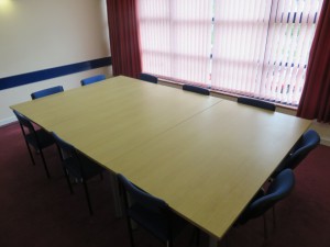 DOUGIES DEN; 5m x 4m seats up to 14 people, and is set up permanently in conference style.  There is plenty of natural lightings, and it is situated in a quiet corner of the centre.  This room has a loop system installed.  If you need break out areas, then then our entrance foyer has plenty of comfortable seating which can be used.