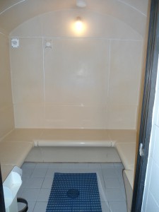 The sauna is an enclosed cabinet that produces dry heat and temperatures can range between 85 – 100°C. The sauna is for mixed gender use and can accommodate a maximum of 4 people at any one time.