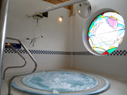 Our spa is a small pool of warm water, usually at approx. body temperature, with jets of water providing a relaxing form of massage. A maximum of 7 people can sit comfortably in the spa pool at any one time.