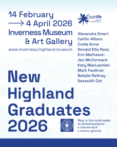 The selected artists work across a wide range of media, engaging imaginatively with the culture, geography and their experiences of the Highlands / Ghàidhealtachd. This exhibition reflects the strength and diversity of contemporary practice emerging in our region.