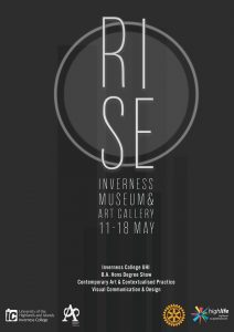 Come along and see the final submissions of work by the honours students from across the BA(Hons) Contemporary Art & Contextualised Practice and the BA(Hons) Visual Communication & Design degree courses at Inverness College UHI.
