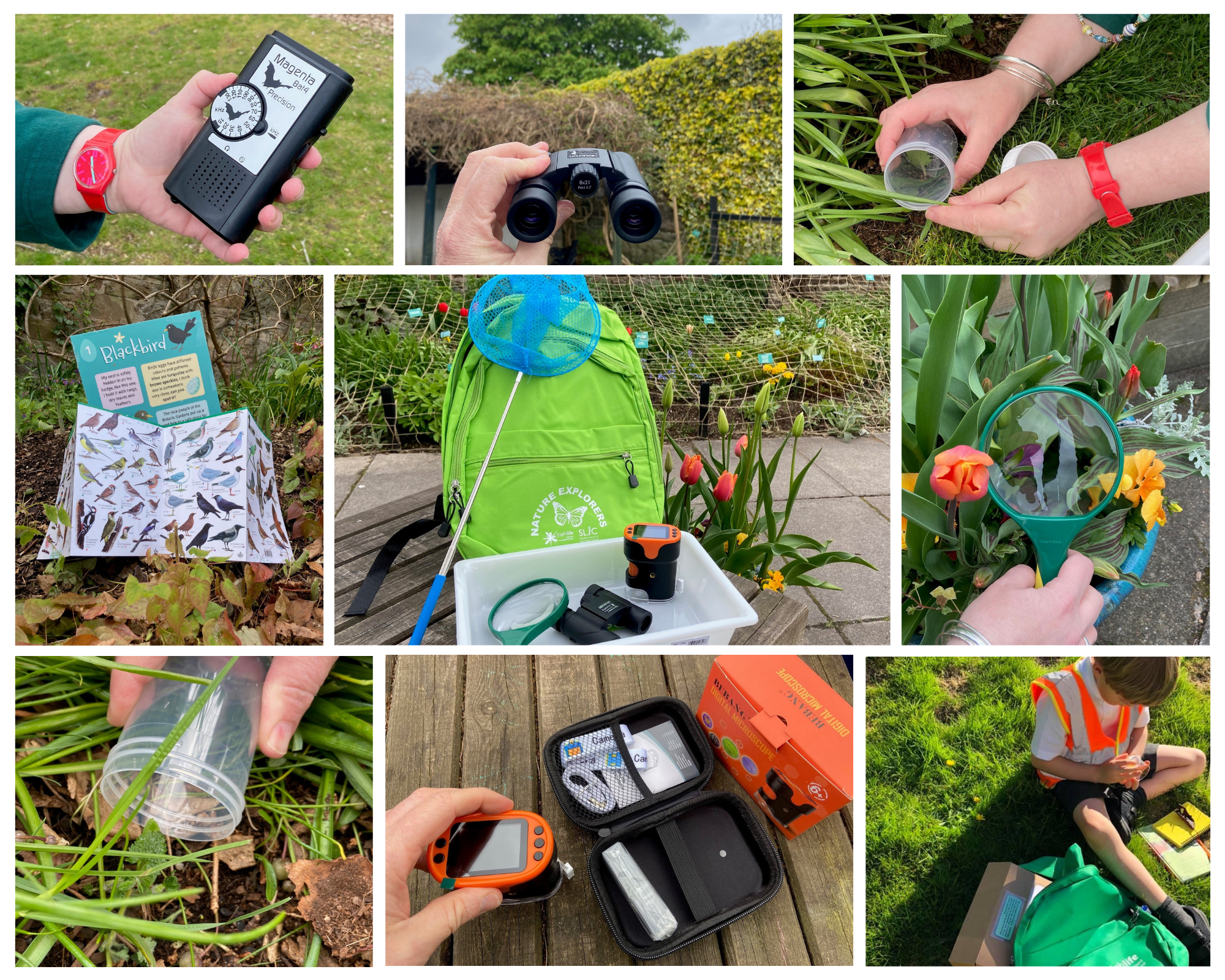 Plant & bird ID cards, seed trays, notepads, handheld magnifiers, bug pots, binoculars, and digital microscopes—making discovery accessible and fun. Themes include Signs of Spring, Love Your Local Nature, Tree Planting, Earth Month, Looking After Your Area, Under the Seaweed.