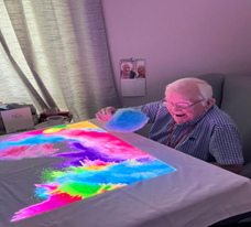 The Happiness Programme is an initiative first developed in Ireland which aims to help to change the lives of people living with cognitive challenges. It uses interactive light technology to provide meaningful activities for residents and patients in care homes and care settings. Using an interactive projector, light projects onto a surface such as a table, floor, ceiling or even someone’s bed, users can interact with device games using hands, arms or feet through the light beams.