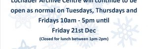 We are pleased to announce that Lochaber Archive Centre will be reopening on 20th September, as the relocation of the archive collections to the new facility within Alexander Ross House (formerly Fort William Primary School) on Achintore Road, Fort William, is now complete. Ahead of the public re-opening we would like to invite you to… Read more »Read more